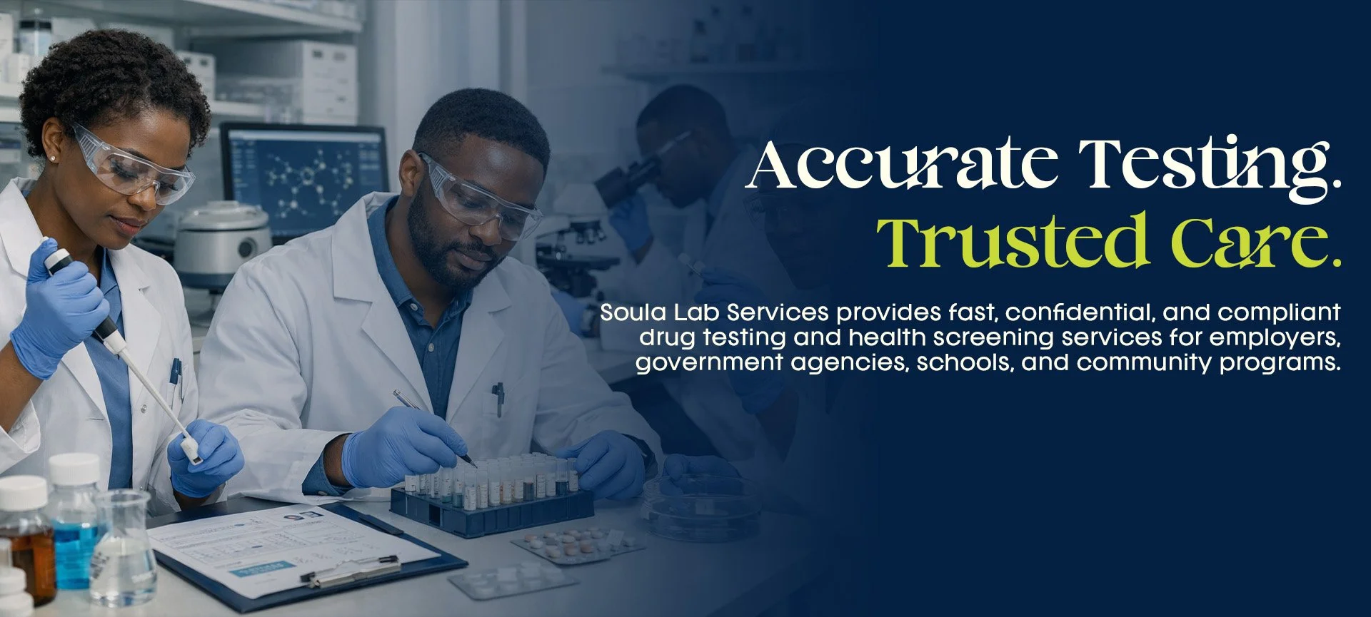 Soula Lab Services provides professional Department of Transportation (DOT) and non-DOT drug testing services in accordance with federal and industry standards. We support employers, transportation companies, contractors, and organizations in maintaining safe and compliant workplaces.